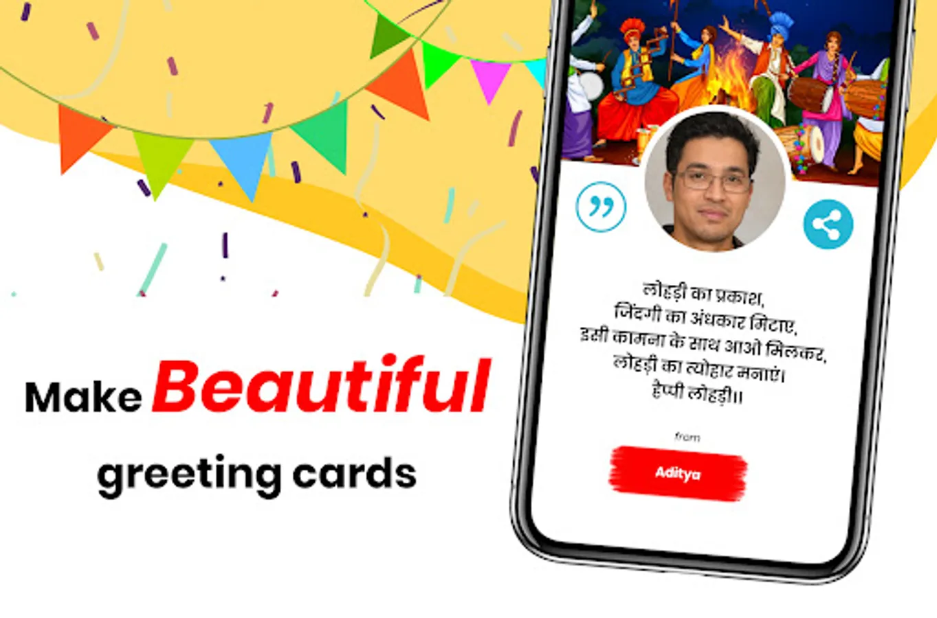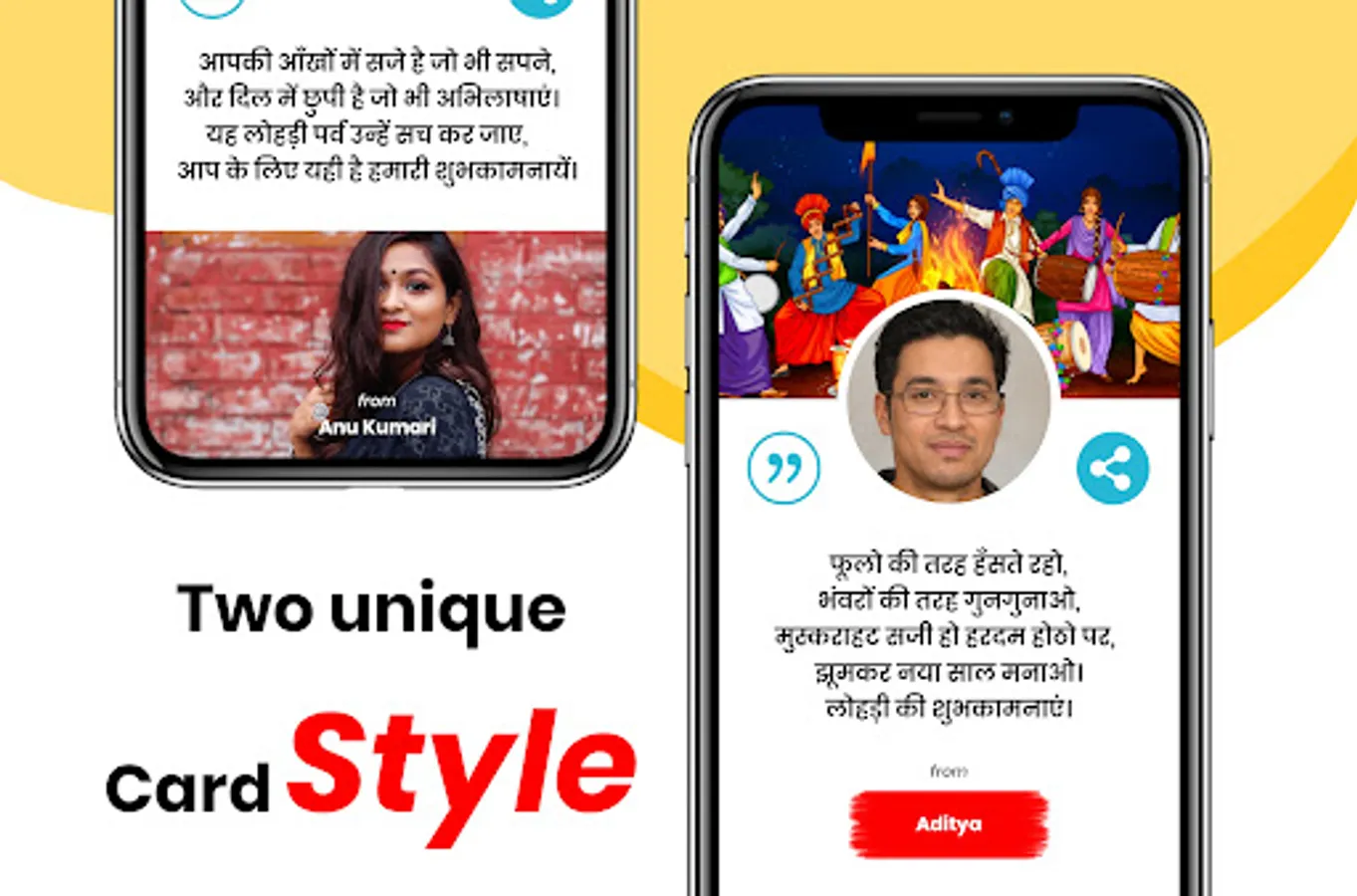 This App generates beautiful cards with your photo. To make cards capture photos direct from the camera or get from the gallery and enter your name or sender name then choose card style there are two styles of cards, Card style 1 or Card style 2! select one of them, and your wishes card will be ready to share you can change wishes from the library just hit quotes button on the top right corner.