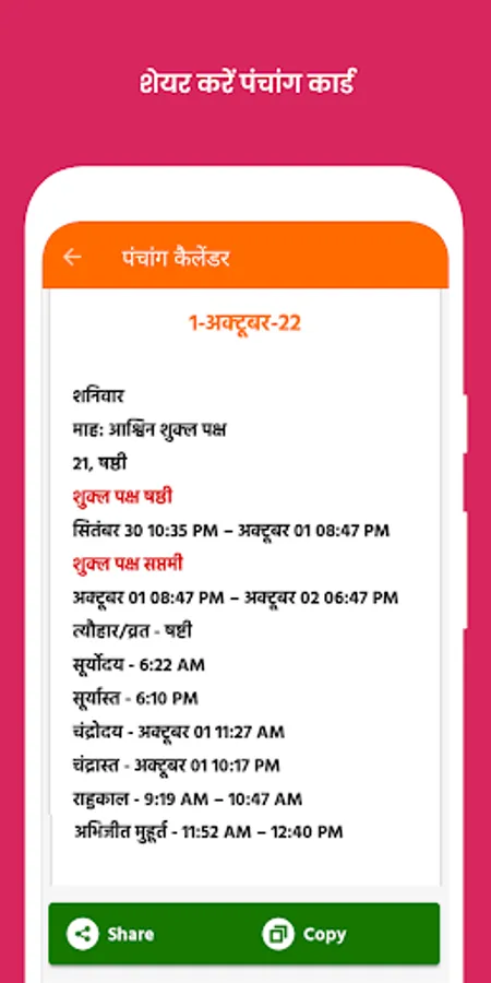 इसमें आप दिनांक की सम्पूर्ण जानकारी जैसे: तिथि, माह, पक्ष, मुहूर्त इत्यादि एक कार्ड के रूप में भेज सकते है।