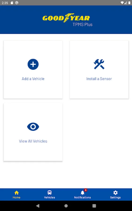 The Goodyear TPMS Plus mobile application helps with the installation of Goodyear TPMS Plus technology on vehicles. The Goodyear TPMS Plus App will streamline the installation process. Users can add vehicles, install sensors, and view existing vehicles information to ensure proper installation or pursue maintenance.