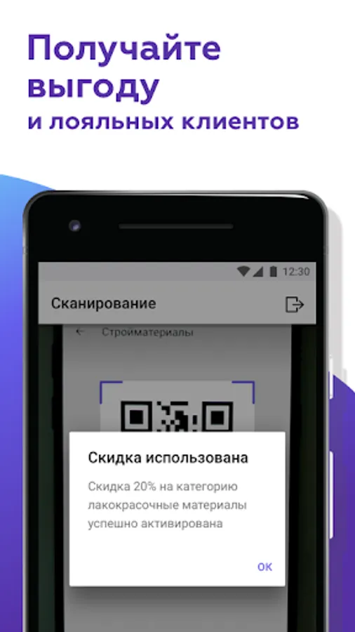- With the help of the application, you activate the code and sell the goods to the customer with the declared discount