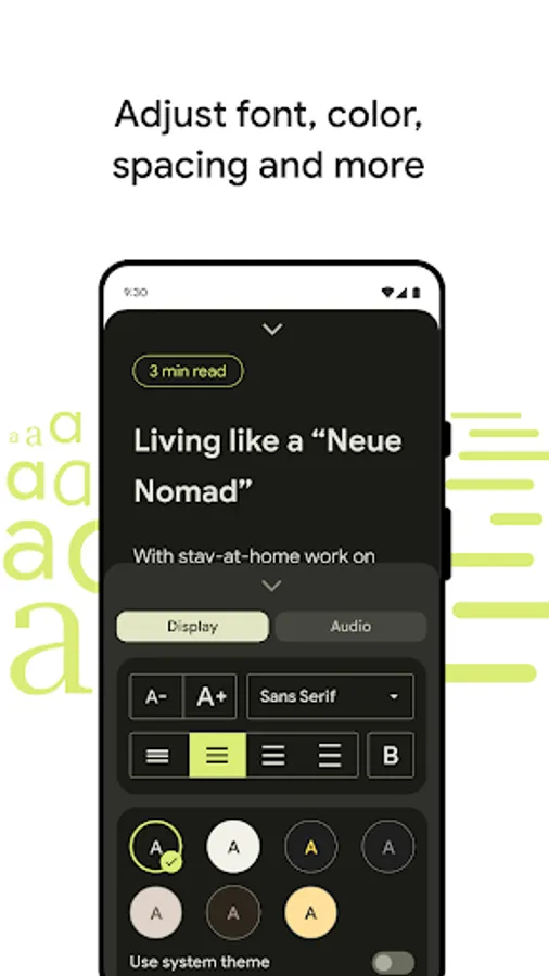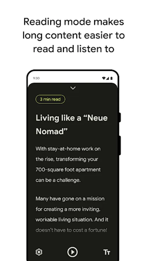 Designed for and with people with low vision, blindness and dyslexia, Reading mode helps improve your screen reading experience with a focus on customizable contrast, text size, text-to-speech, page clutter, and font types. Once downloaded, the app integrates into your quick settings and can be easily accessed across apps and web pages.