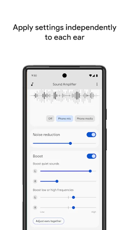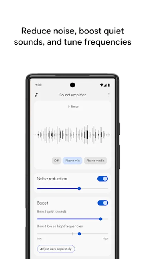 Sound Amplifier makes everyday conversations and surrounding sounds more accessible among people who are hard of hearing, using just your Android phone and a pair of headphones. Use Sound Amplifier to filter, augment, and amplify sounds around you and on your device.