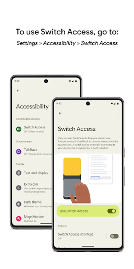 Switch Access helps you interact with your Android device using one or more switches instead of the touchscreen. Switch Access can be helpful if you can't interact directly with your device.