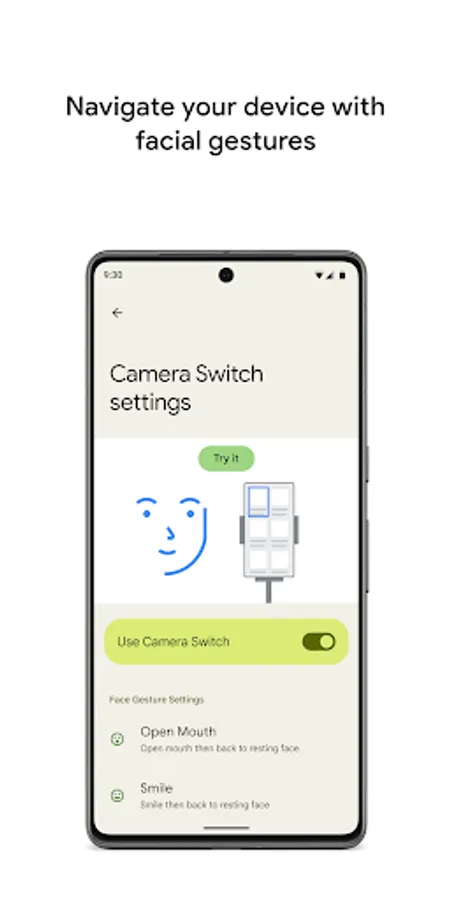 You can use Camera Switches to navigate your phone with facial gestures. Browse or select apps on your phone with the use of your phone’s front camera.