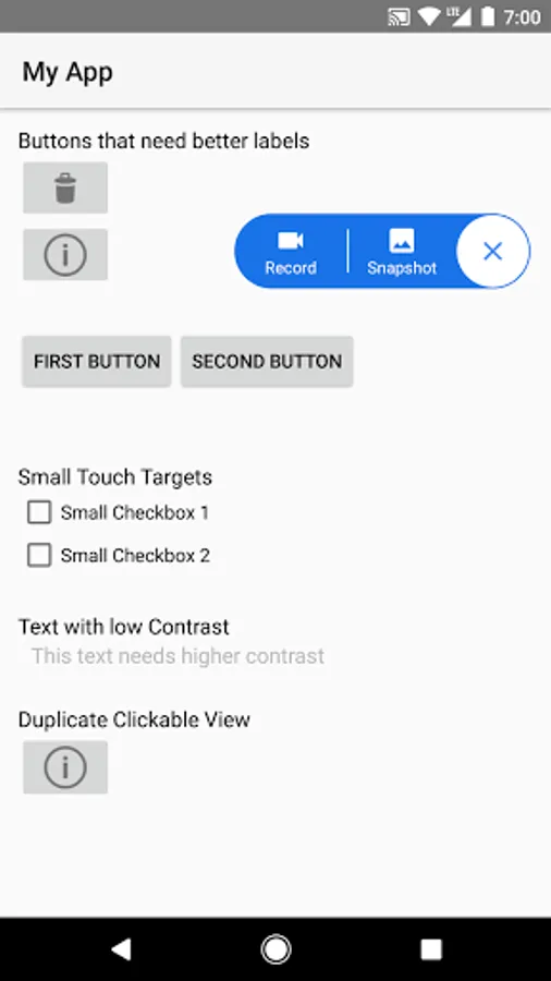 • Navigate to the app you wish to scan and tap the floating Accessibility Scanner button.