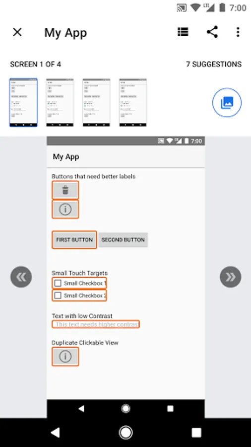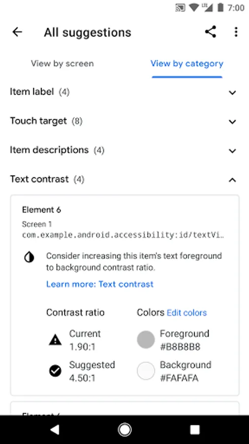 The improvements suggested by Accessibility Scanner can be easily shared with members of your development team to determine how they can be incorporated into the app.