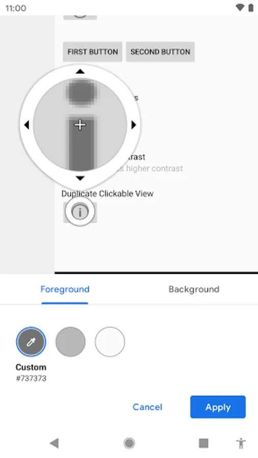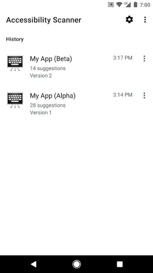 Accessibility Scanner is a tool that scans an app’s user interface to provide recommendations on how to improve accessibility of the app. Accessibility Scanner enables anyone, not just developers, to quickly and easily identify a range of common accessibility improvements; for example, enlarging small touch targets, increasing contrast for text and images and providing content descriptions for unlabelled graphical elements.