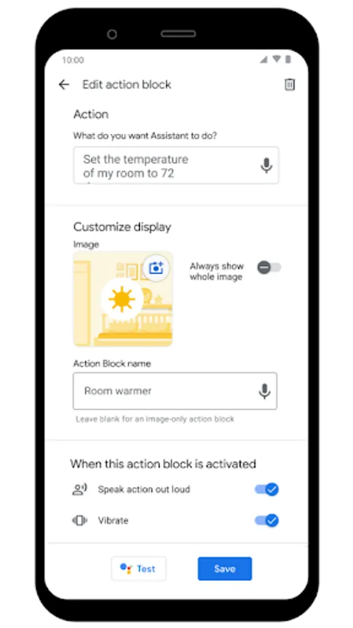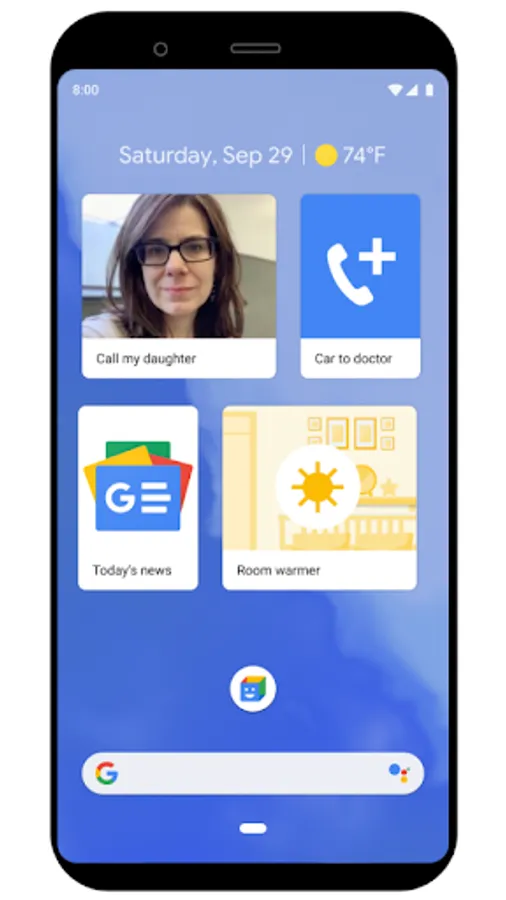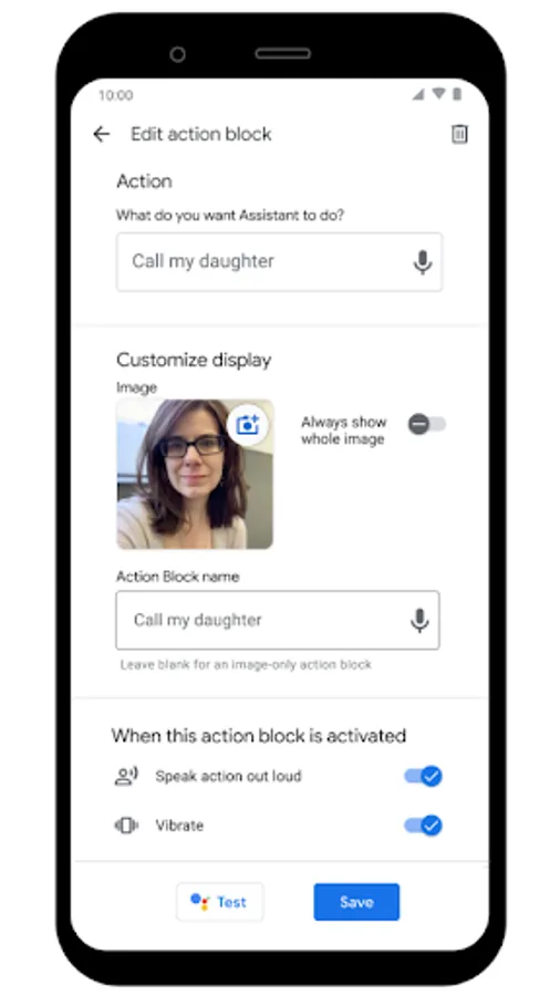 Powered by the Google Assistant, you can easily set up Action Blocks for a loved one. Action Blocks can be configured to do anything the Assistant can do, in just one tap: call a friend, watch your favorite show, control the lights, and more.