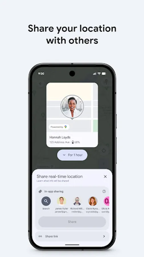 • Share your live location to coordinate a meetup with a friend or check on family to make sure they got home safe.