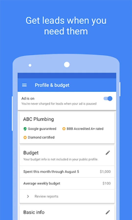 The Local Services ads app makes it easy for you to connect with customers and manage your ads on-the-go. In the app you can: