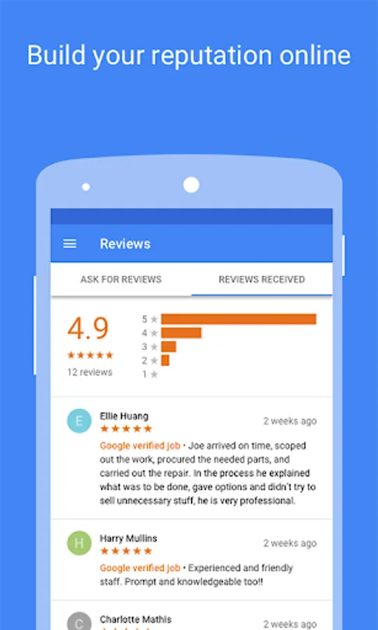 List the types of services you provide and the areas you serve, and we’ll match you with nearby consumers that are actively searching for your services. You can control how often you want leads, by turning your ads on or off any time, directly from the app. Once you complete a job, you can receive reviews from customers that will show on your profile to attract more potential customers and increase your chances of getting even more leads.