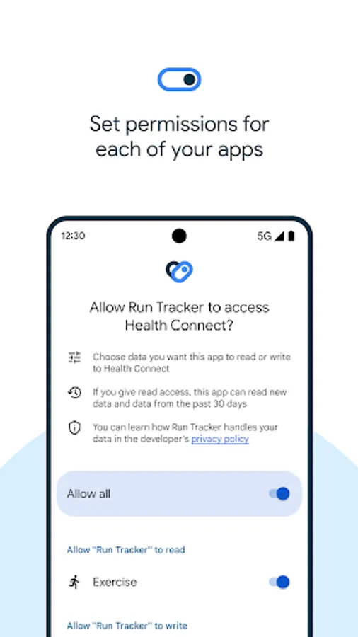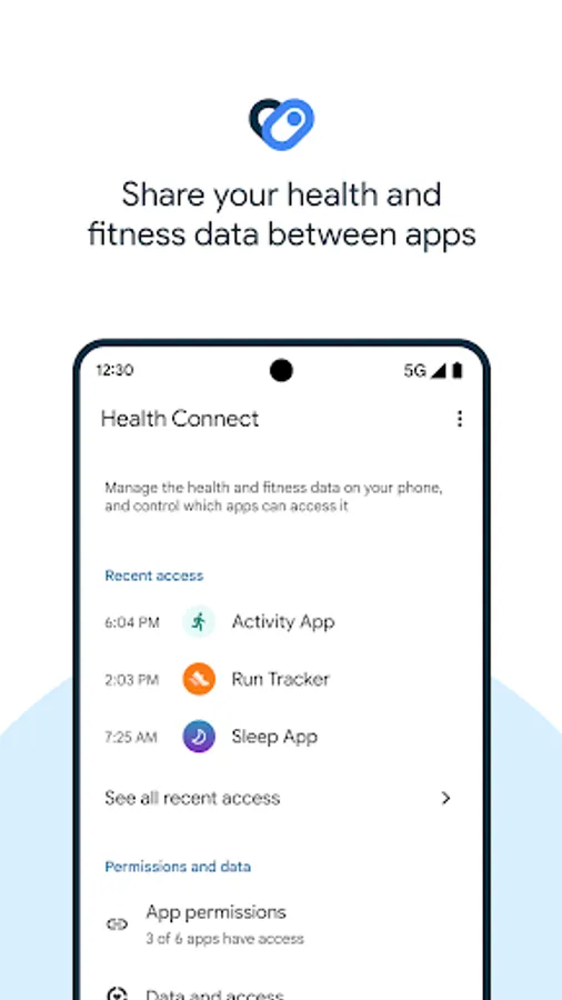 Update privacy settings in a few taps. Before a new app can access your data, you can review and choose what you want to share. If you change your mind, or want to see which apps recently accessed your data, find it all in Health Connect.