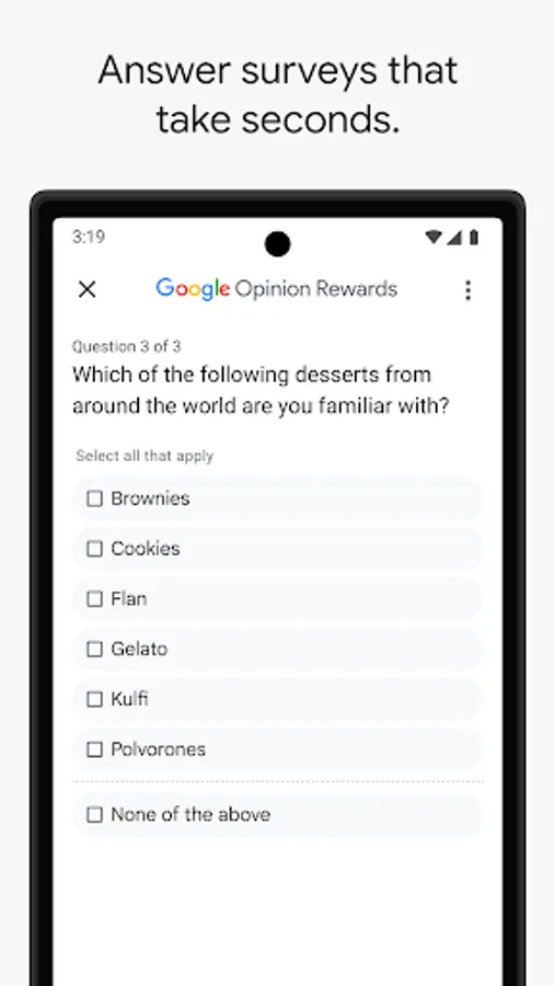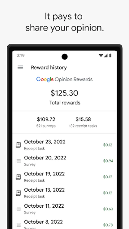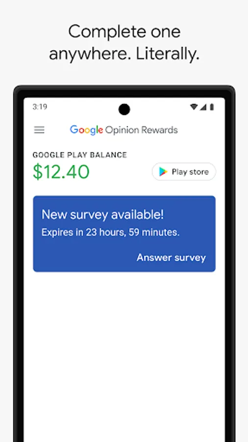 Answer quick surveys and earn Google Play credit with Google Opinion Rewards, an app created by the Google Surveys team.