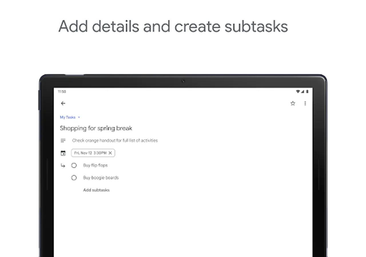 Take control of your task management and install the Google Tasks mobile app. Start easily managing your to-do list on the go with the Tasks planner app from Google.