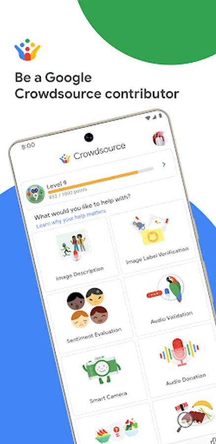 Answer fun and easy questions that drive a huge impact! Progress through levels, unlock badges, and share your achievements along the way! Your voluntary contributions make Google products better in your part of the world. Teach Google Assistant to understand meaning better, improve Google Translate for your language, and help Google Photos identify objects. These are but a few of the ever-growing and diverse types of contributions you can make to improve Google both locally and globally.