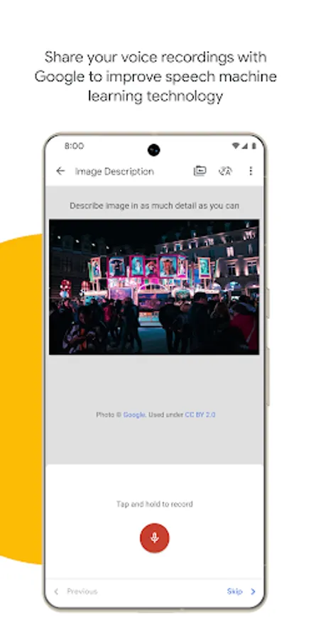 Image Description: Record your voice describing the images presented to you to improve speech technology.