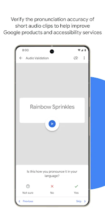 Audio Validation: Listen to a short audio clip and determine if the pronunciation sounds natural in your language.