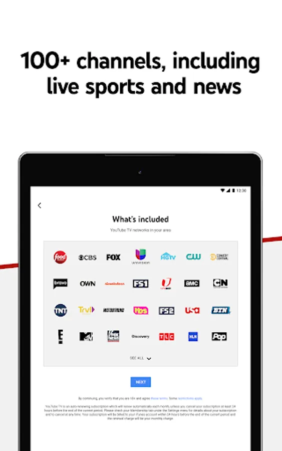Over 100 networks are available in YouTube TV: