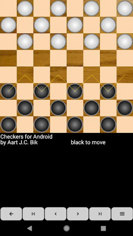 Checkers for Android (draughts) consists of an 8x8 checkers engine and a GUI. The application accepts moves through the touch screen or trackball. An optional "move coach" shows all valid user moves and highlights each last played move. Full game navigation enables users to correct mistakes or analyze games. Games import and export as FEN/PDN to and from the clipboard or via sharing, or are set up through a position editor. The engine plays at various levels (including random and free-play). By popular request, an option was added to select between mandatory captures (the official rule) or optional captures (a common home rule, but without "huffing", where the piece that should have performed the capture is forfeited; instead the game simply continues). The user can play either side and, independently, view the board from the perspective of white or black.