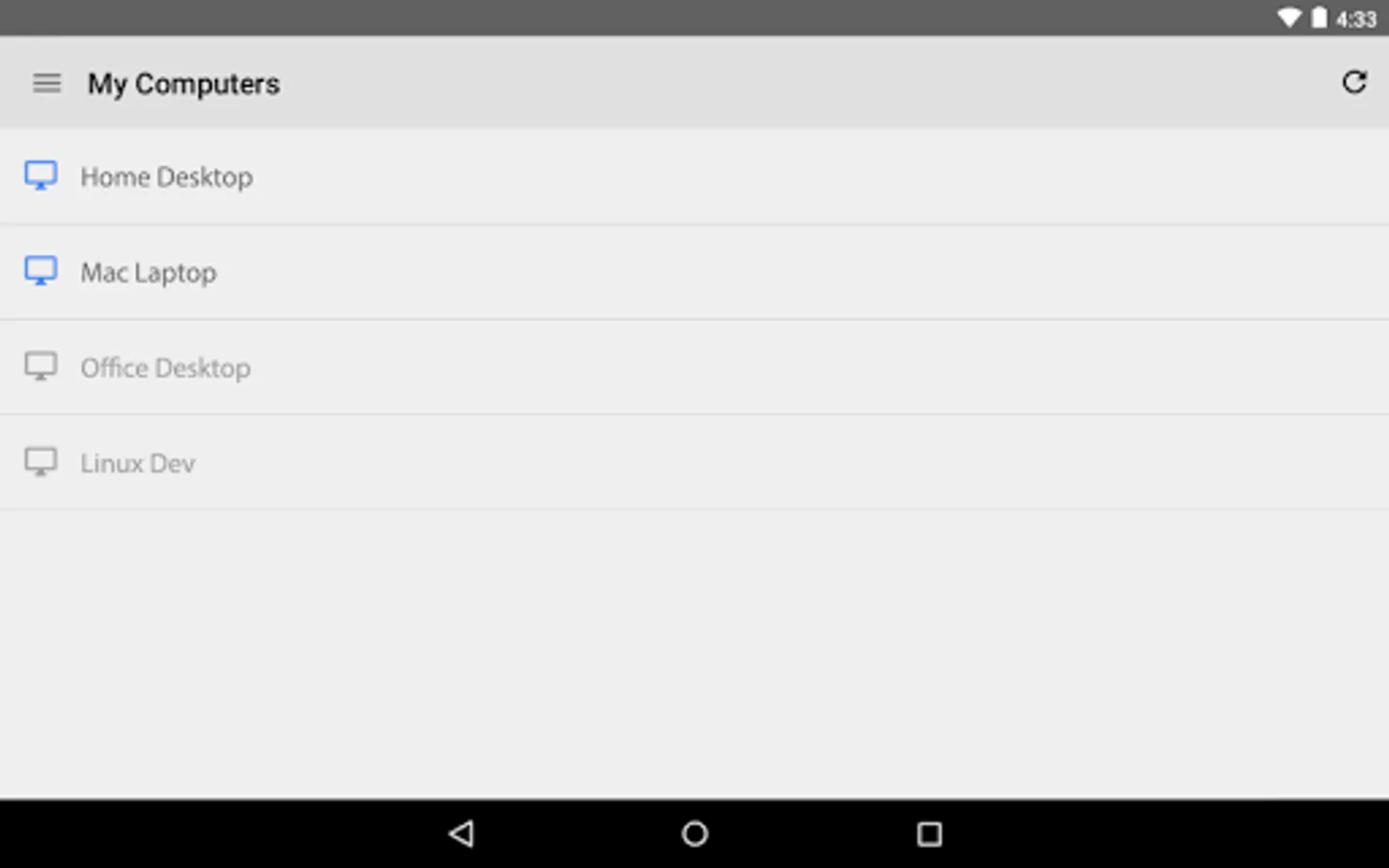 • On your Android device, open the app and tap on any of your online computers to connect.