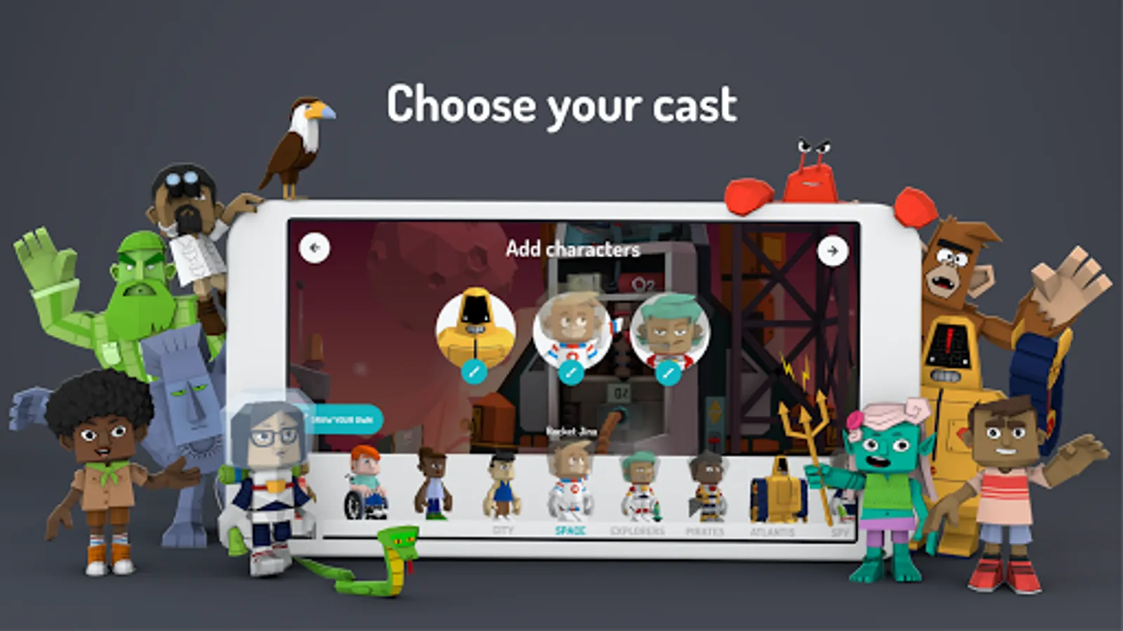 3… 2… 1… ACTION! With Toontastic 3D you can draw, animate, and narrate your own cartoons. It’s as easy as play. Just move your characters around onscreen, tell your story, and Toontastic records your voice and animations and stores it on your device as a 3D video. Toontastic is a powerful and playful way to create interstellar adventures, breaking news reports, video game designs, family photo albums, or anything else you might imagine!