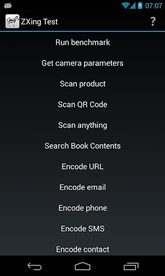 IMPORTANT: This application is for developers only. It is written by the authors of Barcode Scanner to help test that application. It is very rough and will not be useful to average users (really!).