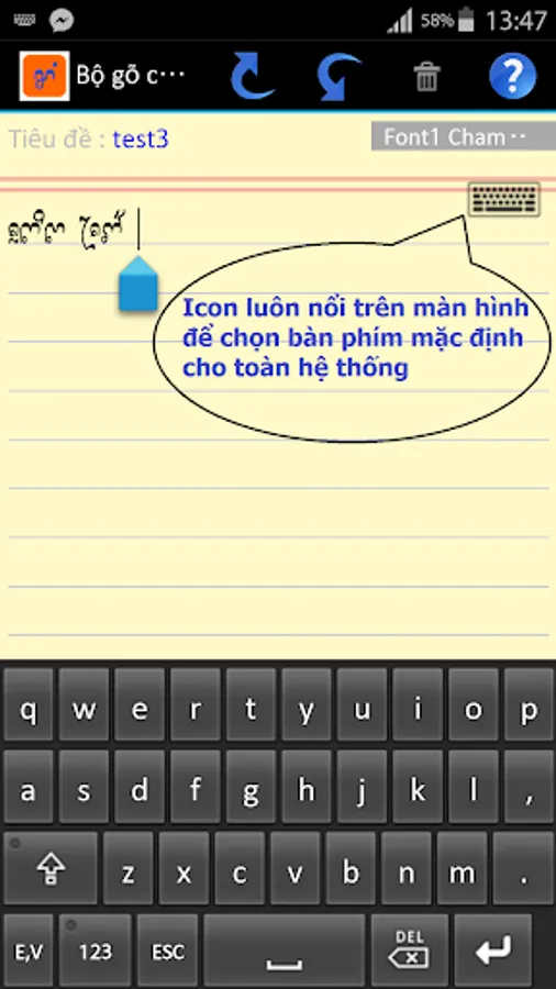 When clicking the "Ch" it will turn into the key "E, V" (and vice versa), when he saw "E, V" is displayed as the English QWERTY keyboard ... but still type in Vietnamese language and retail and many letters from Cham Cham (except from transcriptions with u, Matt, ǐ).