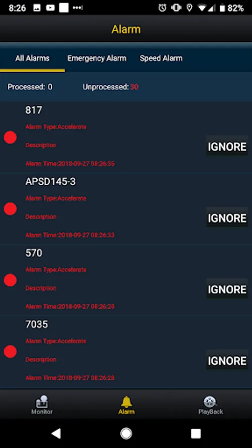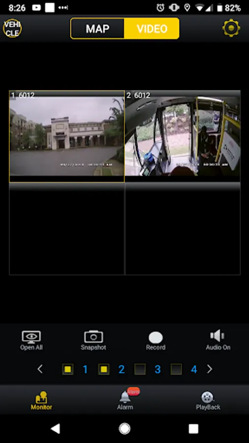 The PRO8 mobile app allows these common features of PRO8CMS for use on your mobile device: live view, live tracking, system alerts, snapshots, quick video clipping and playback. The live view feature provides real-time camera views from vehicles in the field. With live tracking, view your vehicles on the map as they travel. System alerts can be sent via text message or email for driver-operated panic button events, geo-fence breaches and for other user-selectable events. Take snapshots from video, make video clips, playback video and record video to your phone.