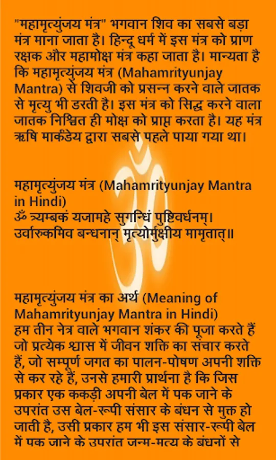 This application also gives the below information about Maha Mrityunjaya Mantra: