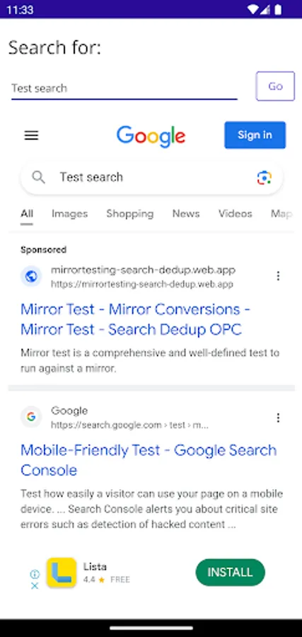 App that allows user to google search. Runs Google AdMob