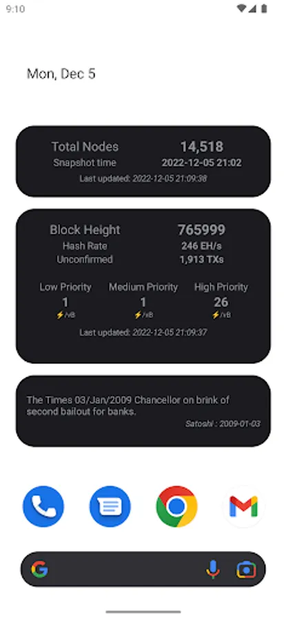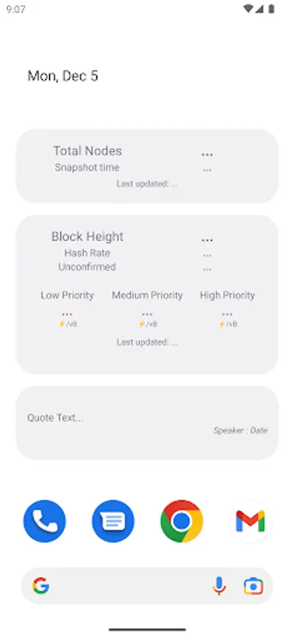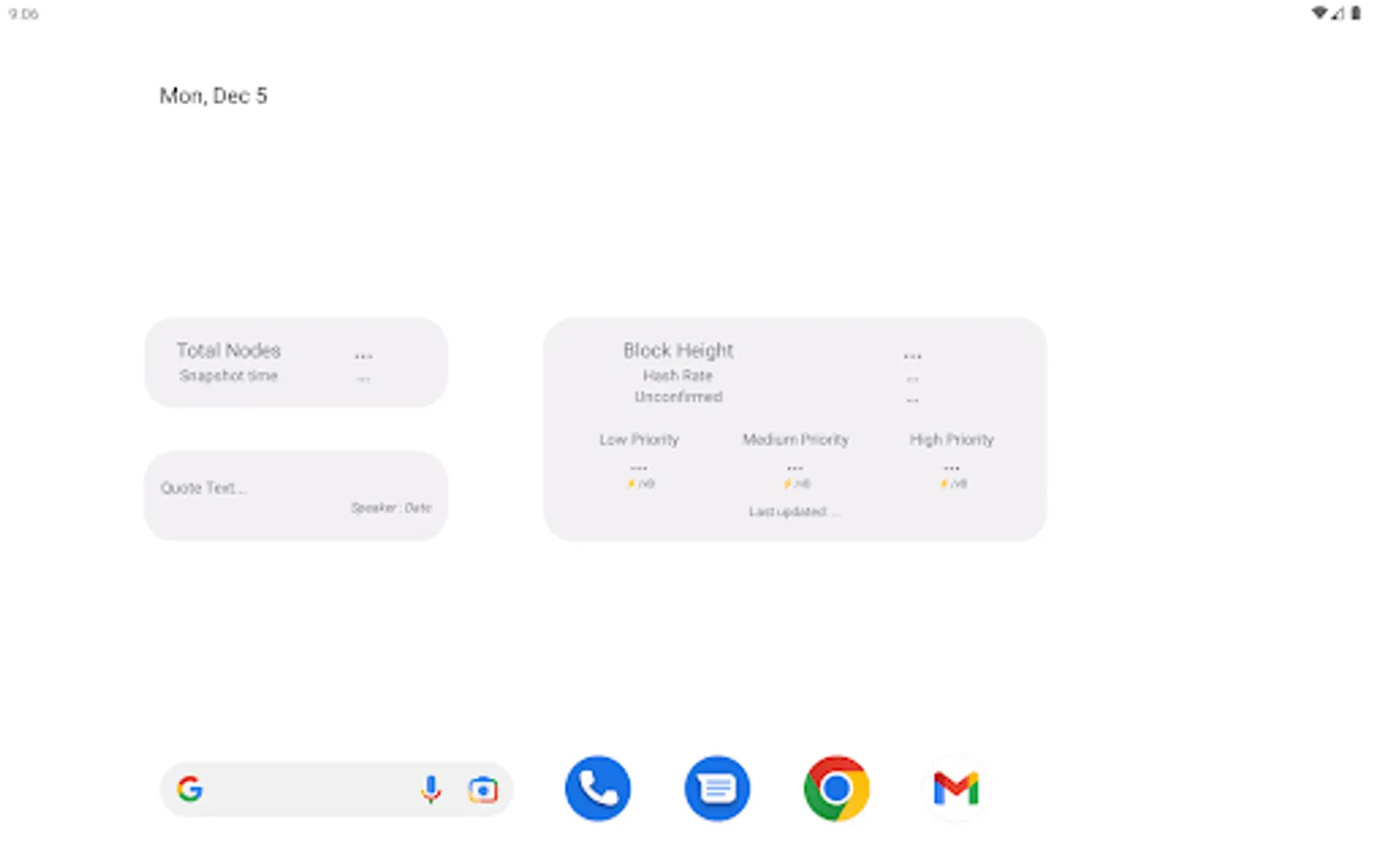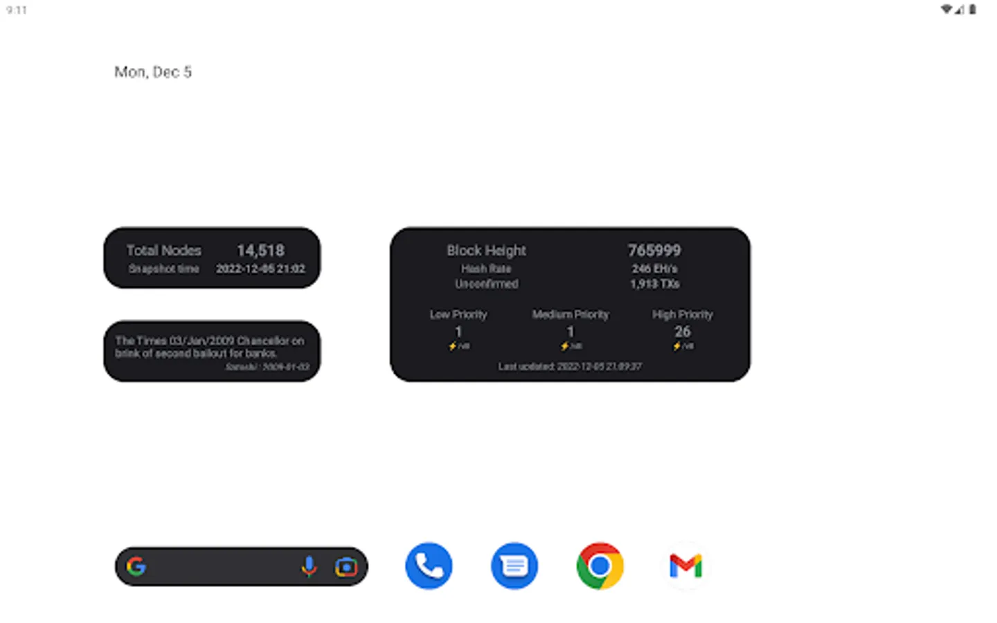 - Mempool glance 4 x 2 (Block height, Hash Rate, Unconfirmed transactions, - - Total Node and Recommended Fees)
