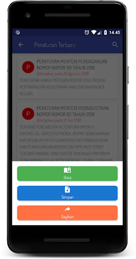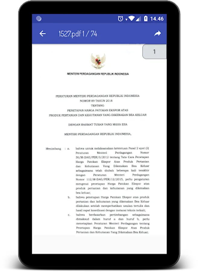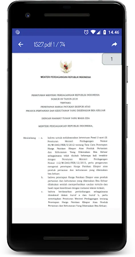 Customs Regulations application has a feature to store pdf files and can be shared with other users using other social media applications.