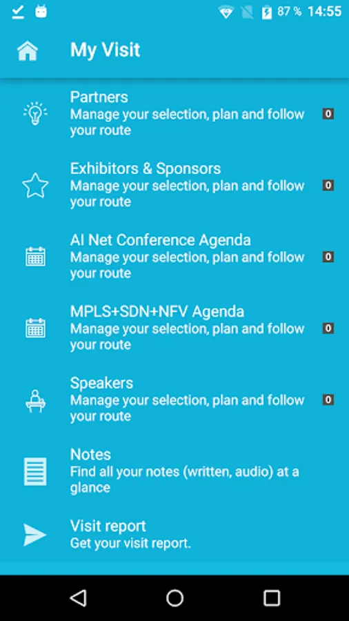 - View the list of Exhibitors & Sponsors, the Agenda and the Speakers list