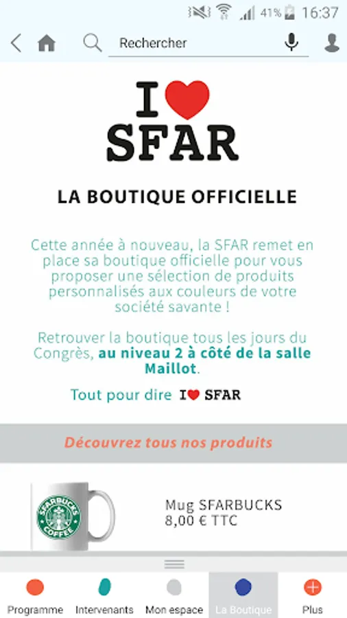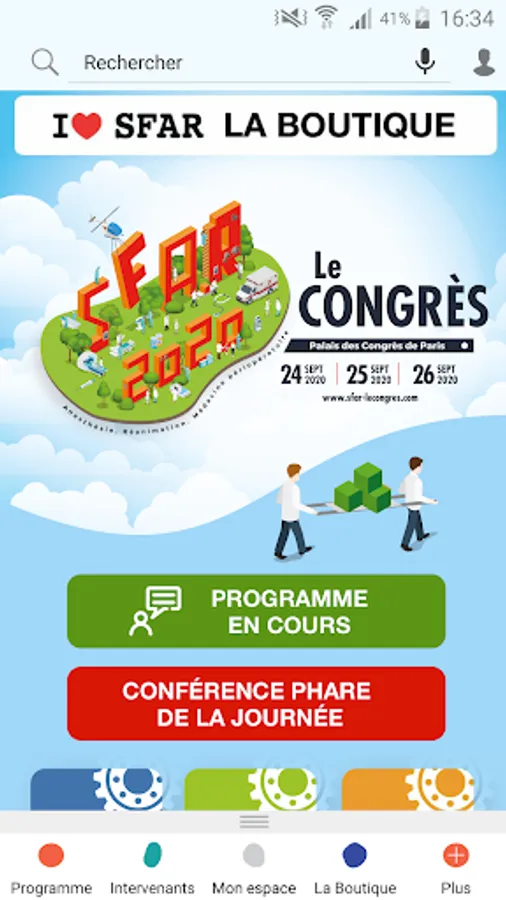 The SFAR 2020 application gives you access to all the information concerning the SFAR 2020 Congress which will be held from September 24 to 26 at the Palais des Congrès de Paris, Porte Maillot. Are you looking for a speaker? The room and time of his lecture? Want to see a full summary? Are you a speaker and want to consult your personalized schedule? Do you want to visit an exhibitor?