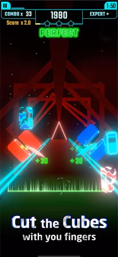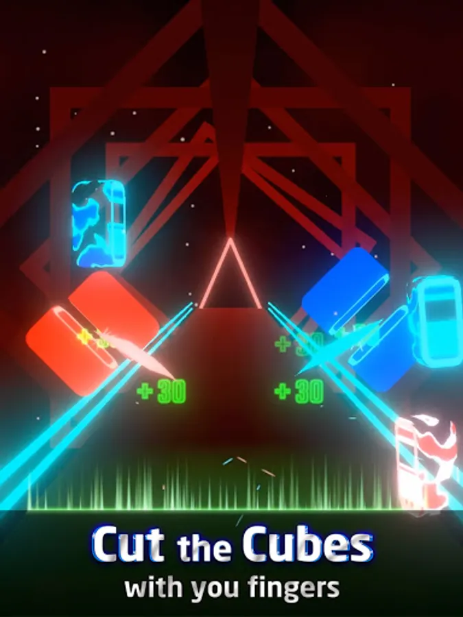 Your fingers are your sabers. Swipe your fingers on the screen to cut the beats in the corresponding direction of the cubes.
