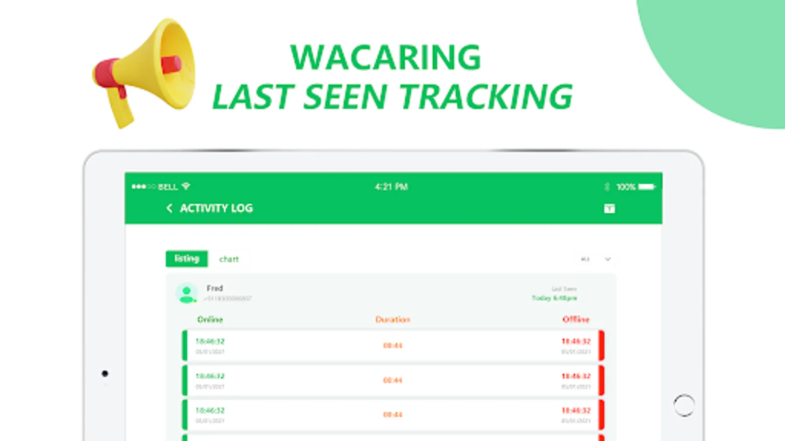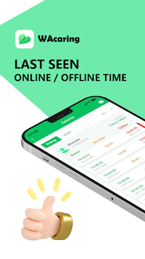“WAcaring” is a powerful track app that helps you keep track of chat activities, online and offline status updates on Whats App. Send you a notification as soon as someone is online. It's easy to understand and use.
