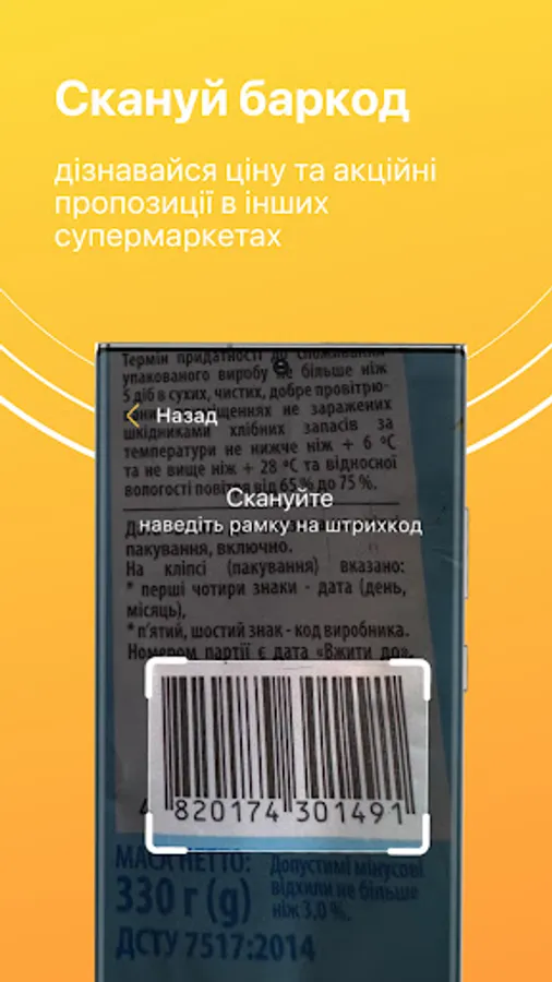 3. Barcode scanning: Gooods is equipped with a powerful barcode scanner, which allows users to quickly get information about the prices and characteristics of a particular product. Users can simply point their smartphone's camera at the product's barcode and the app will automatically recognize it and provide complete information about the product, including its price at various stores.