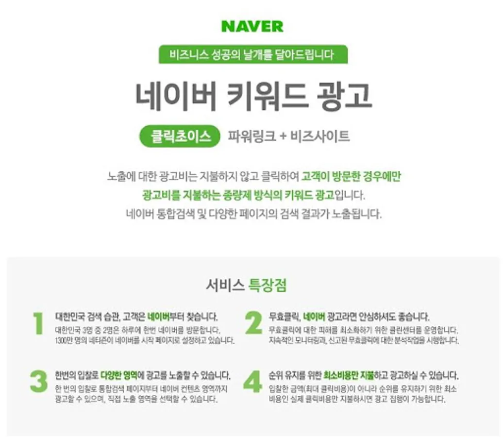 When you click on a keyword, your ad will be charged per click (CPC), followed by DAUM, NATE,