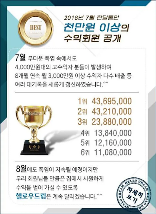 Hello Dream is an online comprehensive advertising agency, a reliable company that has ranked first in the home-grown Alba division for the third consecutive year in the Korean Consumer Satisfaction Index in 2018.