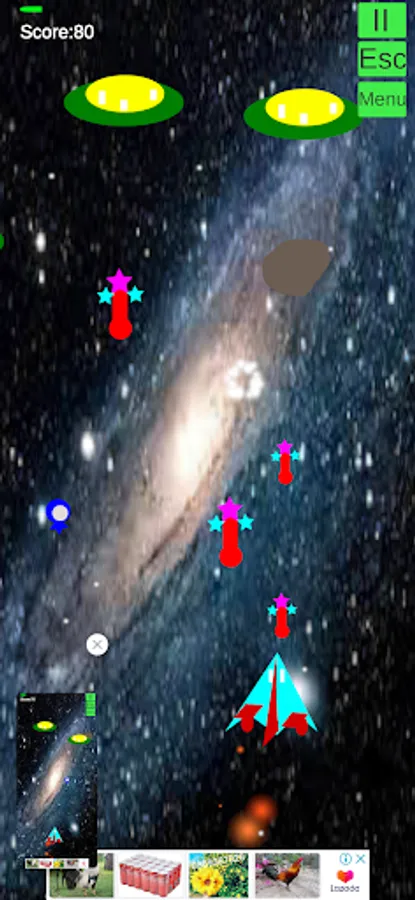 This is space shooter game design by Goose Software 2023.Game is very easy to play you only tuoch on screen on your mobile device to move player and shoot laser to destroy enemy.When your heath bar still bigger than 0 point and you reach 100 points you will be Winner.Again when your health bar become 0 point you will be Looser.