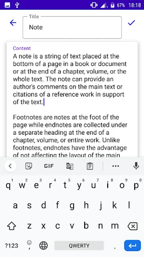 Small and fast notetaking app for making notes, memos, or just any plain text content. Features: