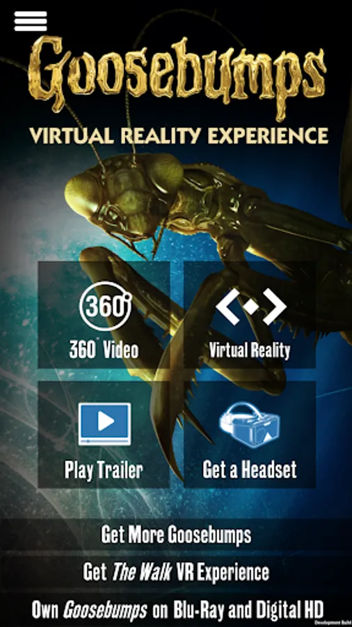 Use your mobile device to help R.L. Stine escape the Praying Mantis! With both Virtual Reality and 360 Video modes you'll be left screaming with terror as the giant bug chases you through the streets!