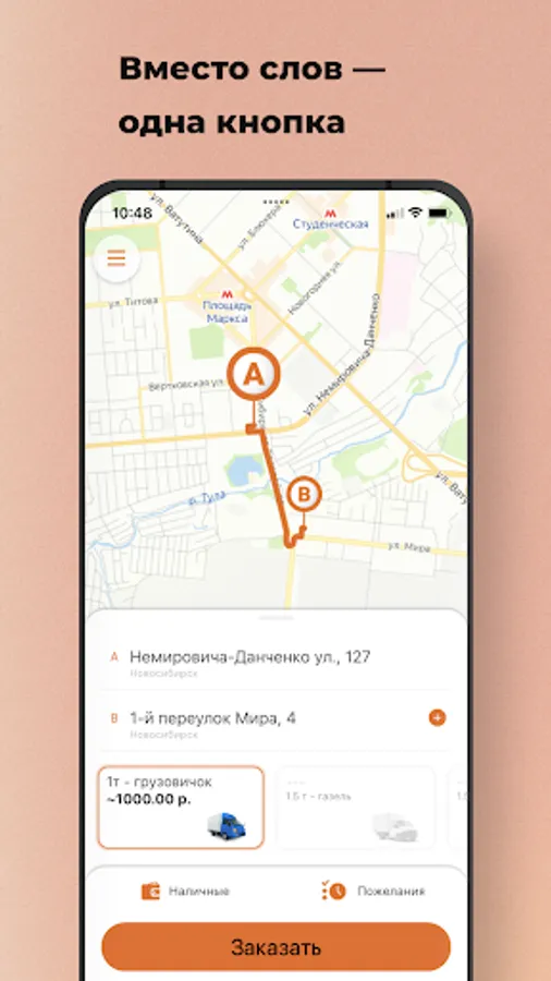 Install the ALMA mobile application and order a cargo taxi to anywhere in Novosibirsk in a couple of clicks.