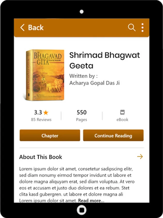 This app brings you Srimad Bhagavad Gita everywhere you go. Bhagavad Gita is knowledge of five basic truths and the relationship of each truth to the other: These five truths are Krishna, or God, the individual soul, the material world, action in this world, and time. The Gita lucidly explains the nature of consciousness, the self, and the universe. It is the essence of India's spiritual wisdom.