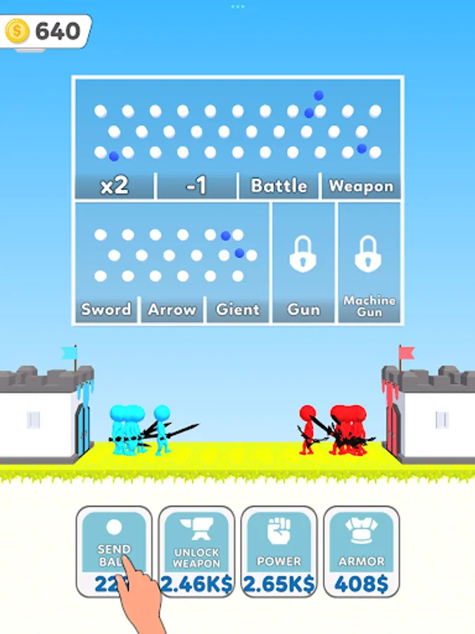 Collect all the balls and try to gain the best troops to defeat enemy.