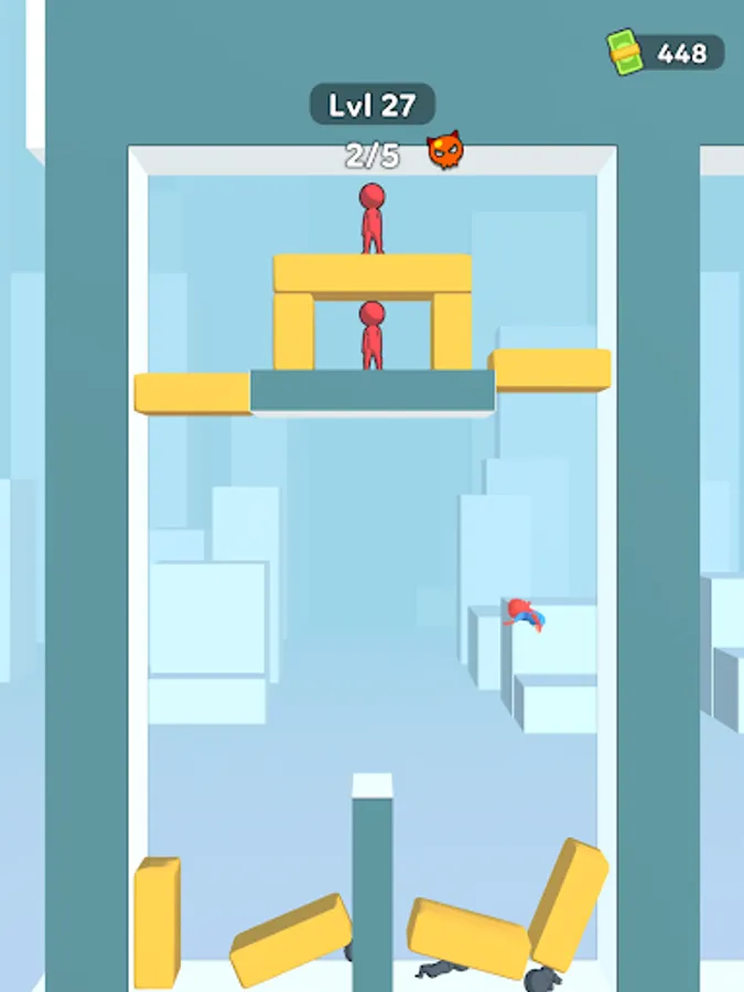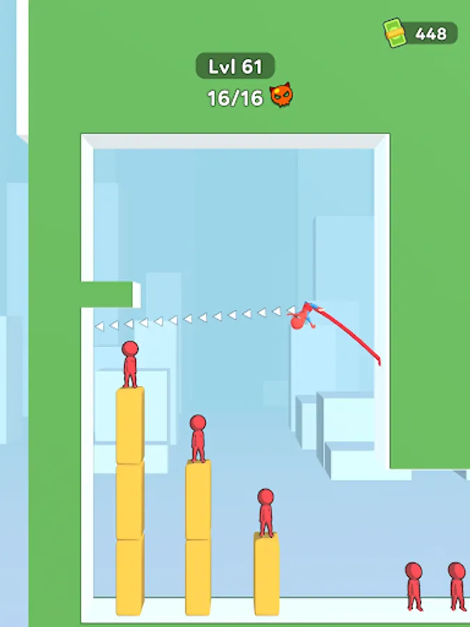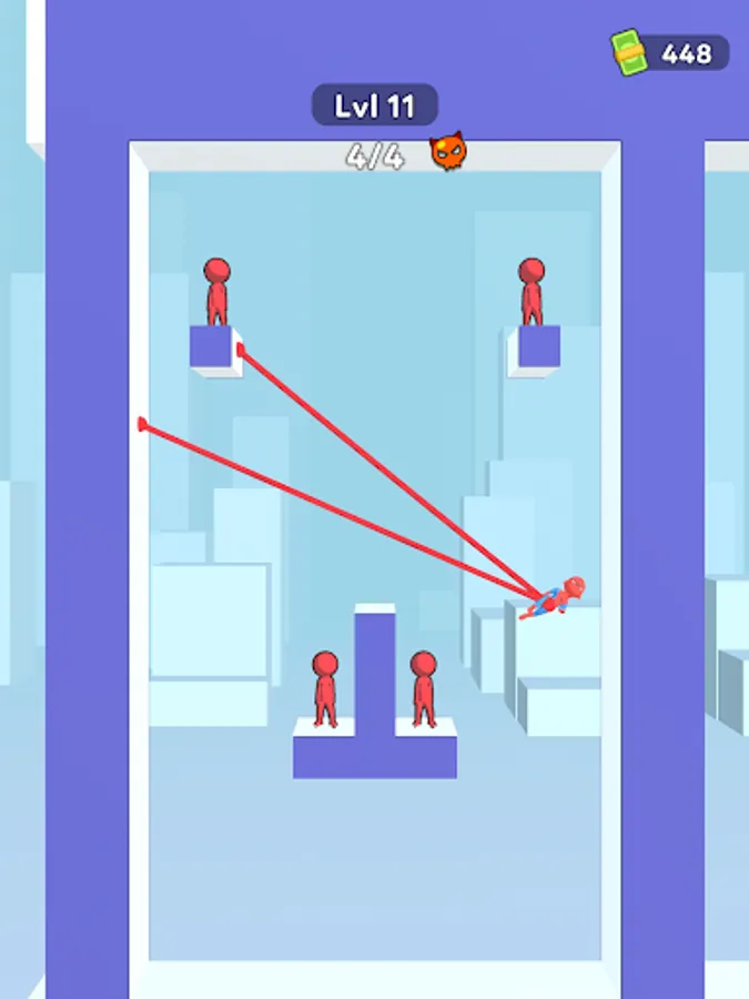 Hold and release to create the 2 strings attached to any point on the wall and let the superhero shoot by replying ong the elasticity of that 2 strings.