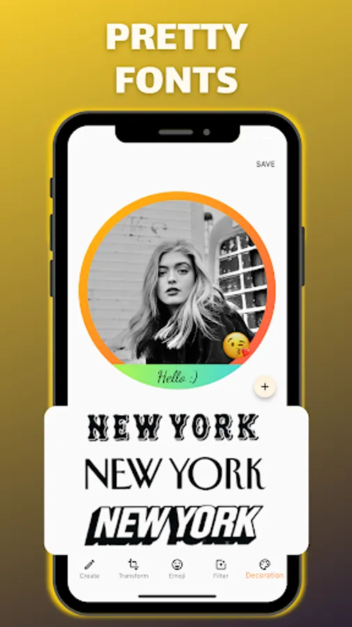 - Pretty Fonts - Add customizable text and font on your profile photo.
