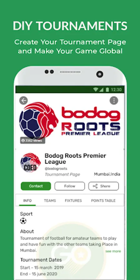 - Pool of Opportunities : Player profiles and Business pages for Teams, Tournaments, Academies, Grounds, Umpires, Scorers and so much more! Create your page and get recognised in the Sports Network!
