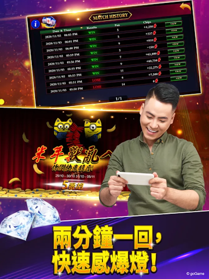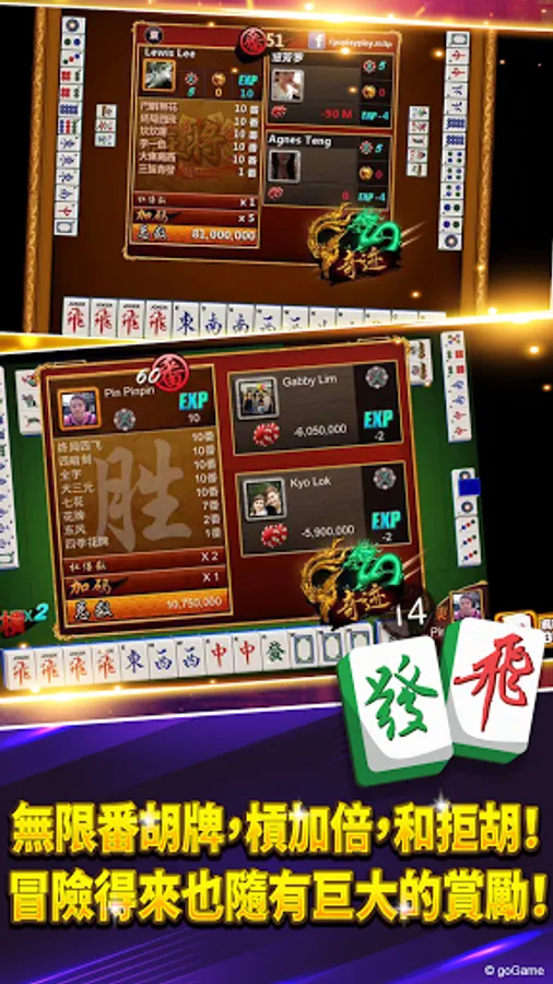 4. Mahjong 3P players can win more than 10 rounds. The bigger the number, the double the chips. Over 40 rounds to win 12 times the chips!