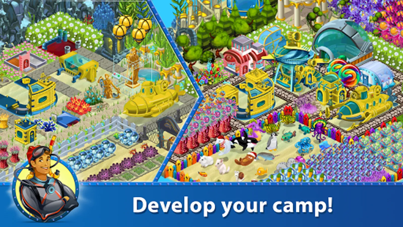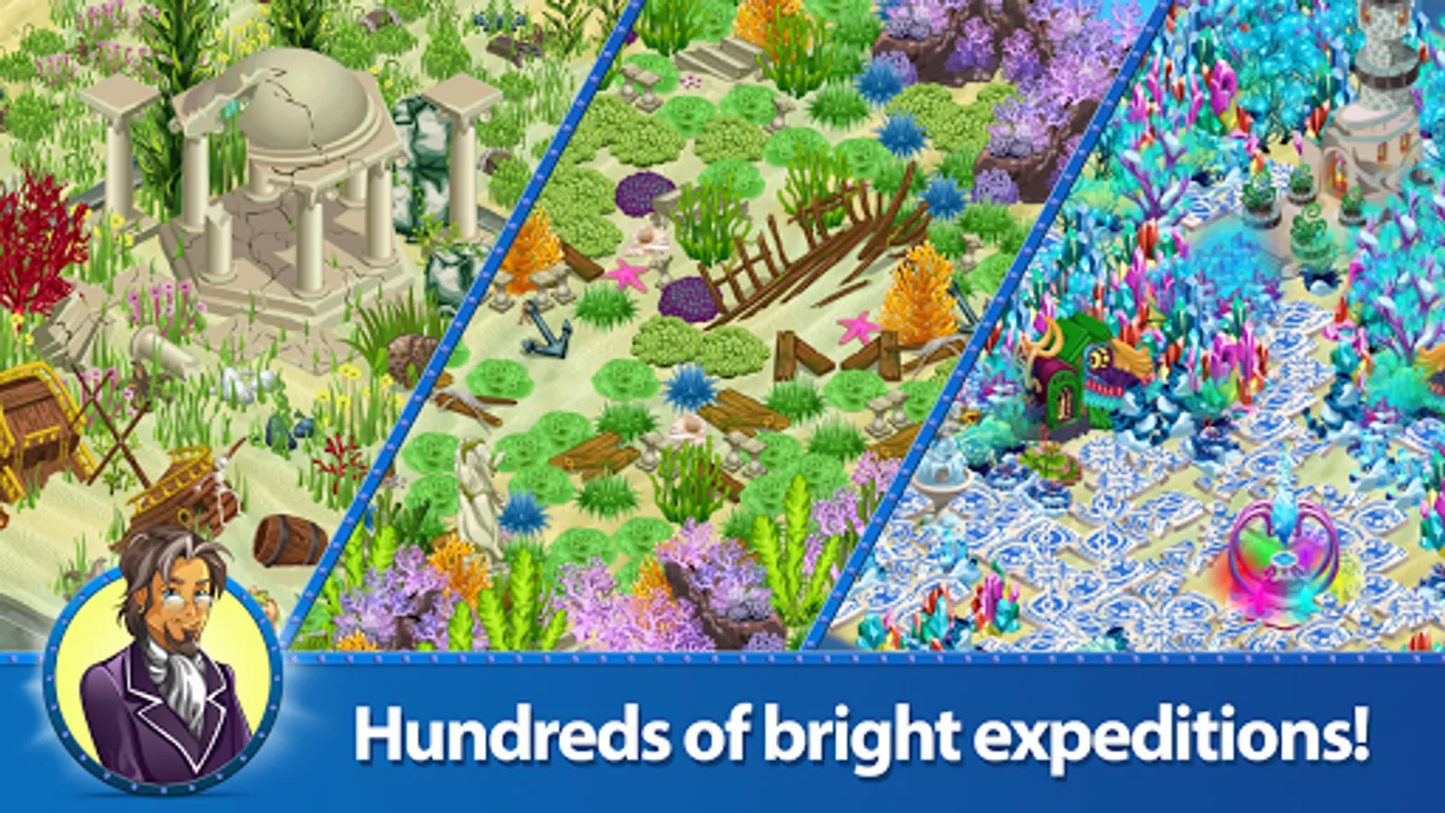 Exploring the depths of the sea, you can find many rare and unusual things. Collect the items you find and combine them into collections to get resources to develop your underwater station.